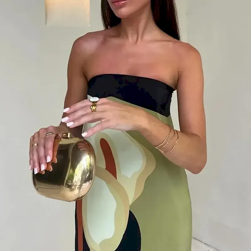 – Perfect for the summer season- Made of high-quality polyester fabric- Sleeveless design for ultimate comfort- Designed for women’s style- Ideal for vacation occasions- Fashionable cocktail dress type- Features a trendy color block pattern- Eye-catching print design- Stylish strapless neckline for a glamorous look