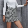 [Fabric and Fit] This high-waist mini skirt is crafted from soft and durable polyester, ensuring comfort and flexibility. The bodycon silhouette accentuates the figure, offering a flattering and stylish fit that sits comfortably at the waist.[Design Highlights] Featuring a timeless houndstooth print, this skirt combines classic elegance with a modern touch. The high waist design not only accentuates the waistline but also adds a sophisticated edge to your outfit, making it a fashionable choice for any wardrobe.[Occasions] Perfect for a variety of settings, this skirt is ideal for date nights, vacations, casual outings, or a stylish day out on the streets. Its versatile design allows it to transition seamlessly from casual to smart-casual environments, exuding elegance and fashion-forward style.[Seasons] This skirt is designed for year-round wear, making it suitable for spring, summer, fall, and winter. Its versatile fabric and design allow it to be paired with various tops for different occasions and weather conditions.[Size Range] Available in sizes S, M, L, and XL, this skirt caters to a wide range of body types, ensuring that you find the perfect fit for your personal style and comfort.OK